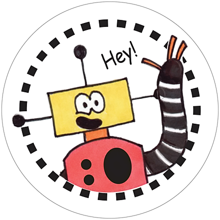 Sheet of 6 Yellowhead the Robot Stickers.